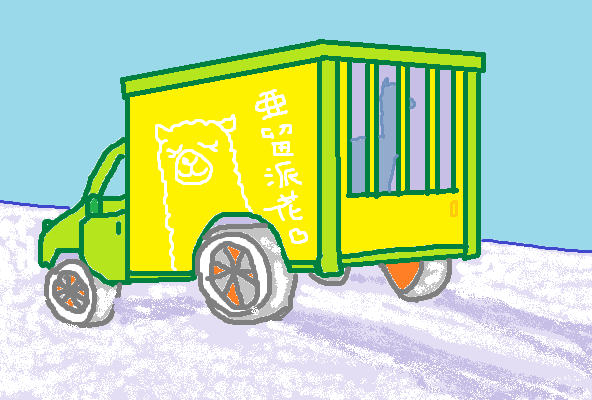 ▼にょっぴぃを執拗に追うアルパカーネ。愛車は自分で改造したトラック▼